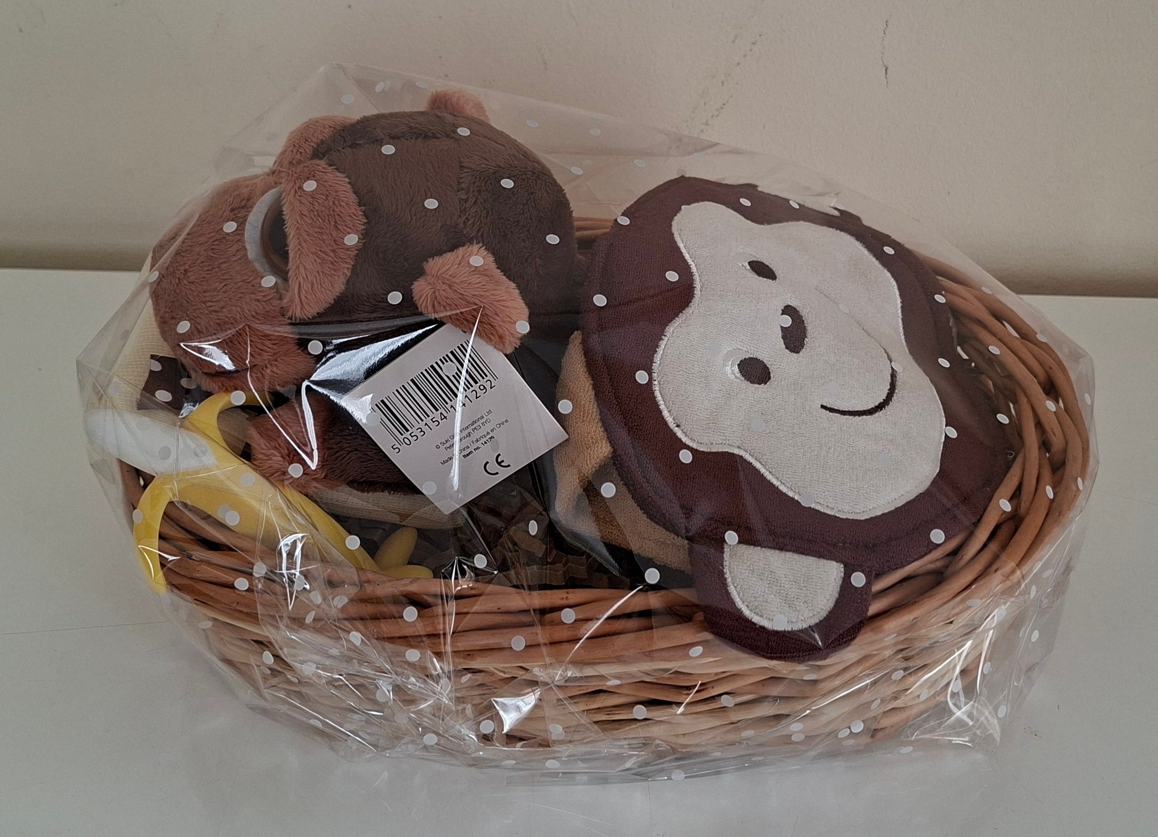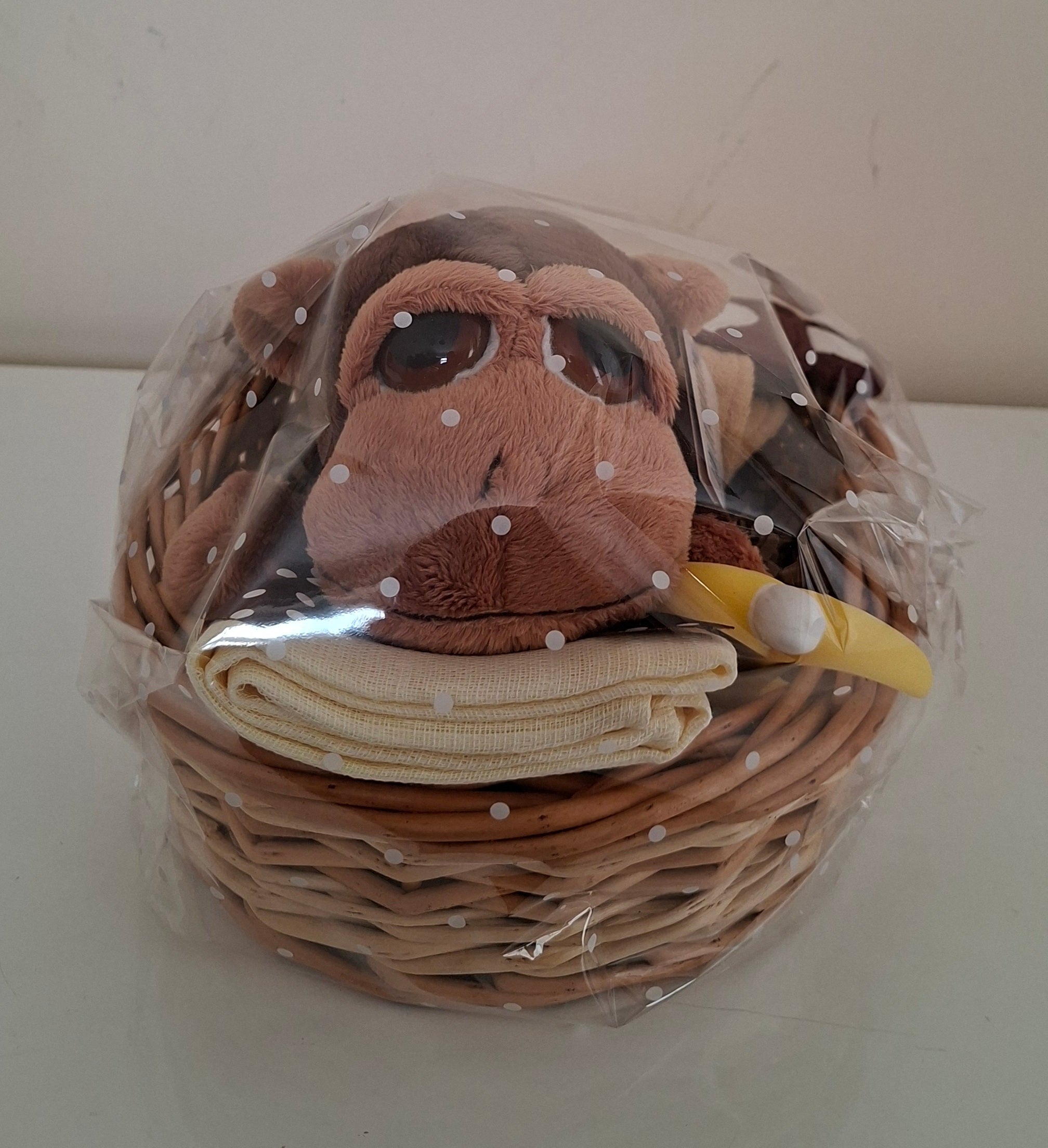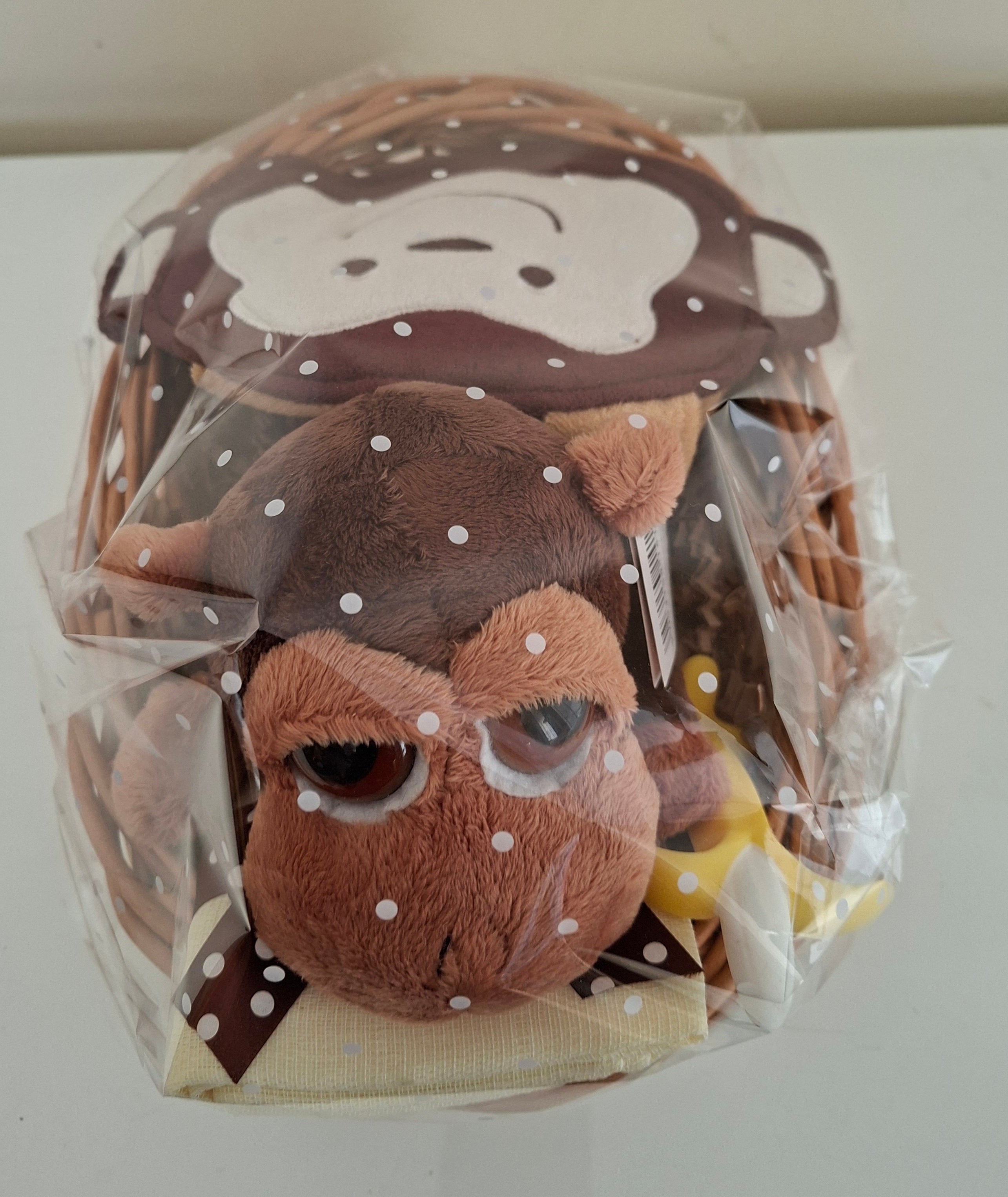 This thoughtfully curated baby hamper combines essential nursery items with charming monkey-themed styling, making it an ideal present for baby showers or newborn celebrations. The basket is assembled with quality products selected to support early parenting needs. The playful monkey design adds a touch of personality to any nursery while maintaining a sophisticated presentation.