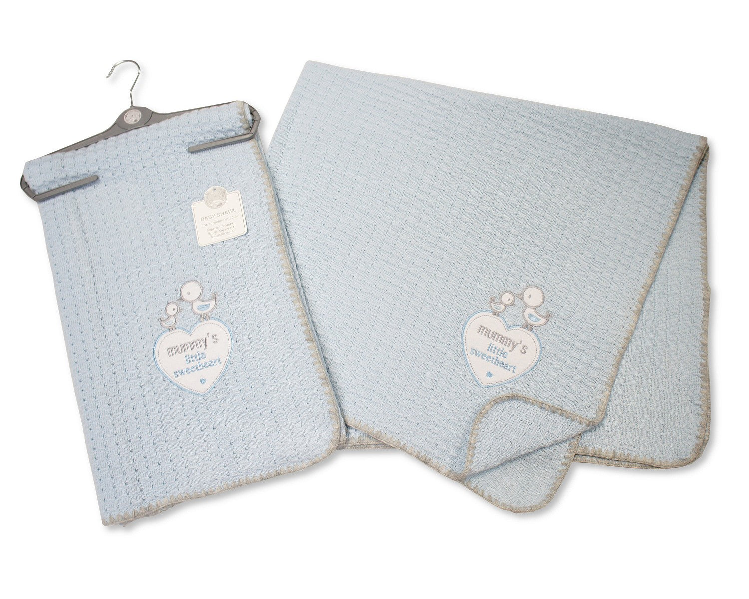 Introduce softness and warmth to your nursery with this generously sized baby shawl blanket in a lovely blue hue. Designed with infants in mind, the expansive dimensions offer versatile functionality—use it for swaddling or as stroller coverage. Made from quality acrylic materials, this shawl provides reliable durability through frequent washing and everyday use. Whether for everyday comfort or special occasions, this piece becomes an essential addition to your baby care essentials.